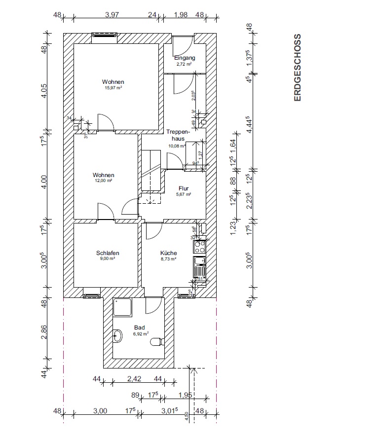 Die WG-Einheit im zweiten Obergeschoss befindet sich hingegen in einem einfacheren Ausstattungszustand; hier besteht perspektivisch Modernisierungsbedarf.