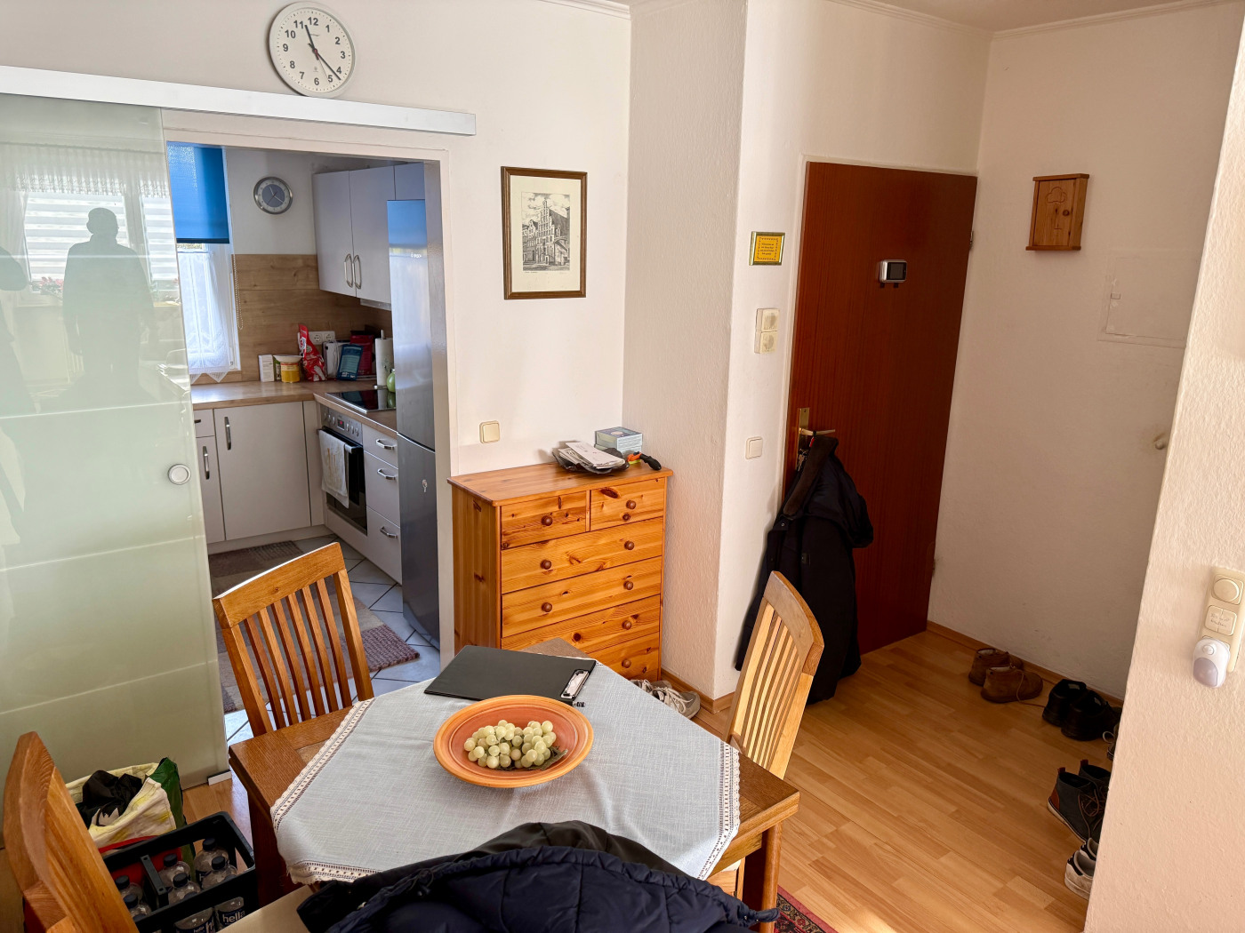 Die Wohnung im 1. Obergeschoss verfügt über eine Wohnfläche von etwa 77 m² und bietet eine durchdachte Raumaufteilung. Der sonnige Balkon in Süd-Ausrichtung lädt zum Entspannen ein. Das Badezimmer wurde modernisiert, wobei die alte Badewanne durch eine große Dusche ersetzt wurde. Zudem ist ein Waschmaschinenanschluss vorhanden. Die Küche wurde vor rund fünf Jahren erneuert und ist mit modernen Geräten ausgestattet.