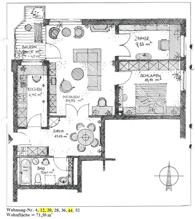 Die Wohnung ist seit 1984 an eine ältere Dame für 572,- € netto kalt vermietet. Die Nebenkosten betragen 244,- € mtl. Das Wohngeld ist auf 456,- € festgesetzt.